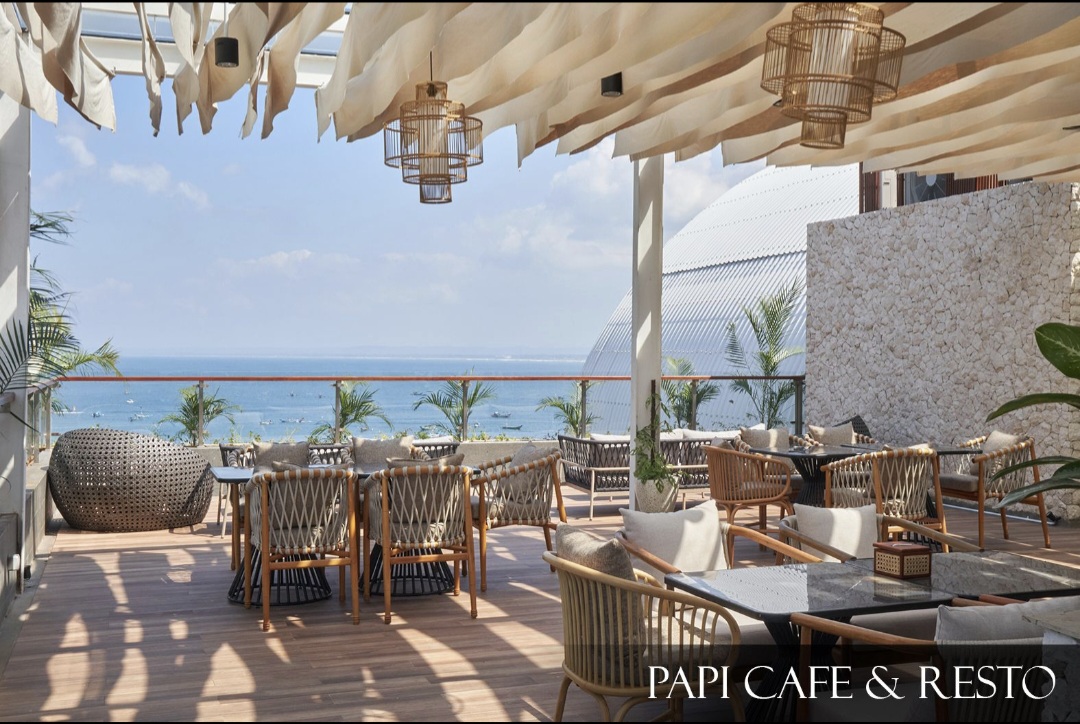 Papi Café & Resto ini terletak di rooftop Hotel Grand Palma Pangandaran dengan langsung dengan laut dan ada juga view sunset terbaik.